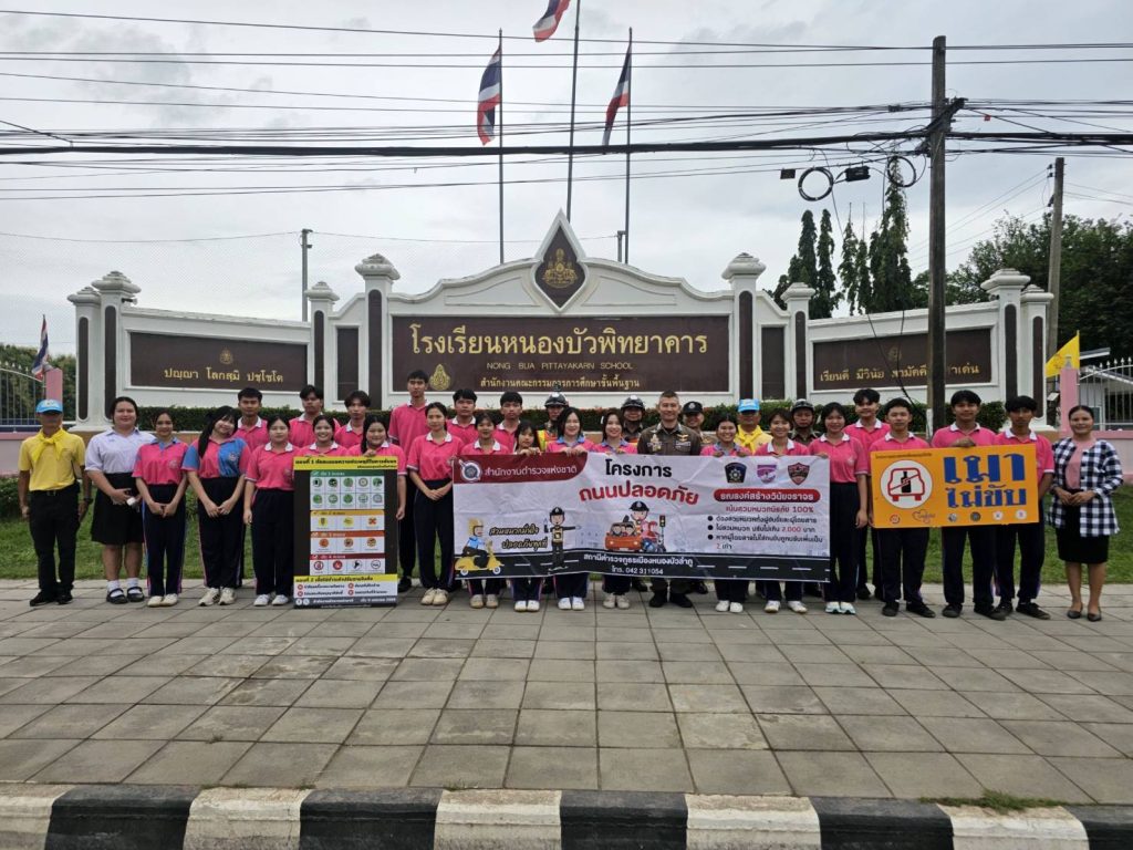 และกิจกรรมประชาสัมพันธ์ถนนปลอดภัย แจกหมวกนิรภัยสำหรับประชาชนเพื่อป้องกันและลดอุบัติเหตุทางถนนลดการสูญเสียทั้งชีวิตและทรัพย์สินส่งเสริมให้ผู้ขับขี่และผู้โดยสารรถจักรยานยนต์สวมหมวกนิรภัย ๑๐๐ เปอร์เซ็นต์ ซึ่งเป็นการเสริมสร้างการมีส่วนร่วมกับส่วนราชการและภาคเอกชน นักเรียนนักศึกษา เยาวชน และประชาชนในพื้นที่ร่วมกัน ณ บริเวณถนนปลอดภัย ด้านหน้า ร.ร.หนองบัวพิทยาคาร อ.เมืองหนองบัวลำภู จ.หนองบัวลำภู