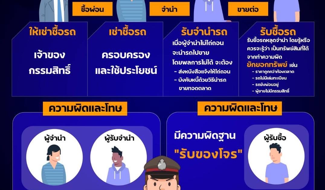 รู้หรือไม่ หากรับจำนำรถติดไฟแนนซ์ หรือผ่อนยังไม่หมด ไปขายต่อ ผิดกฎหมายเจอโทษทั้งปรับ ทั้งติดคุก ฐานยักยอกทรัพย์ รับของโจร
